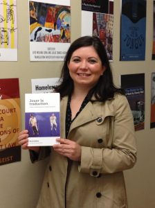 Nicole Nolette est originaire de l’Alberta et se promène pour voir du théâtre un peu partout en Amérique du Nord. Son livre, Jouer la traduction. Théâtre et hétérolinguisme au Canada francophone, sera publié aux Presses de l’Université d’Ottawa en mai 2015.