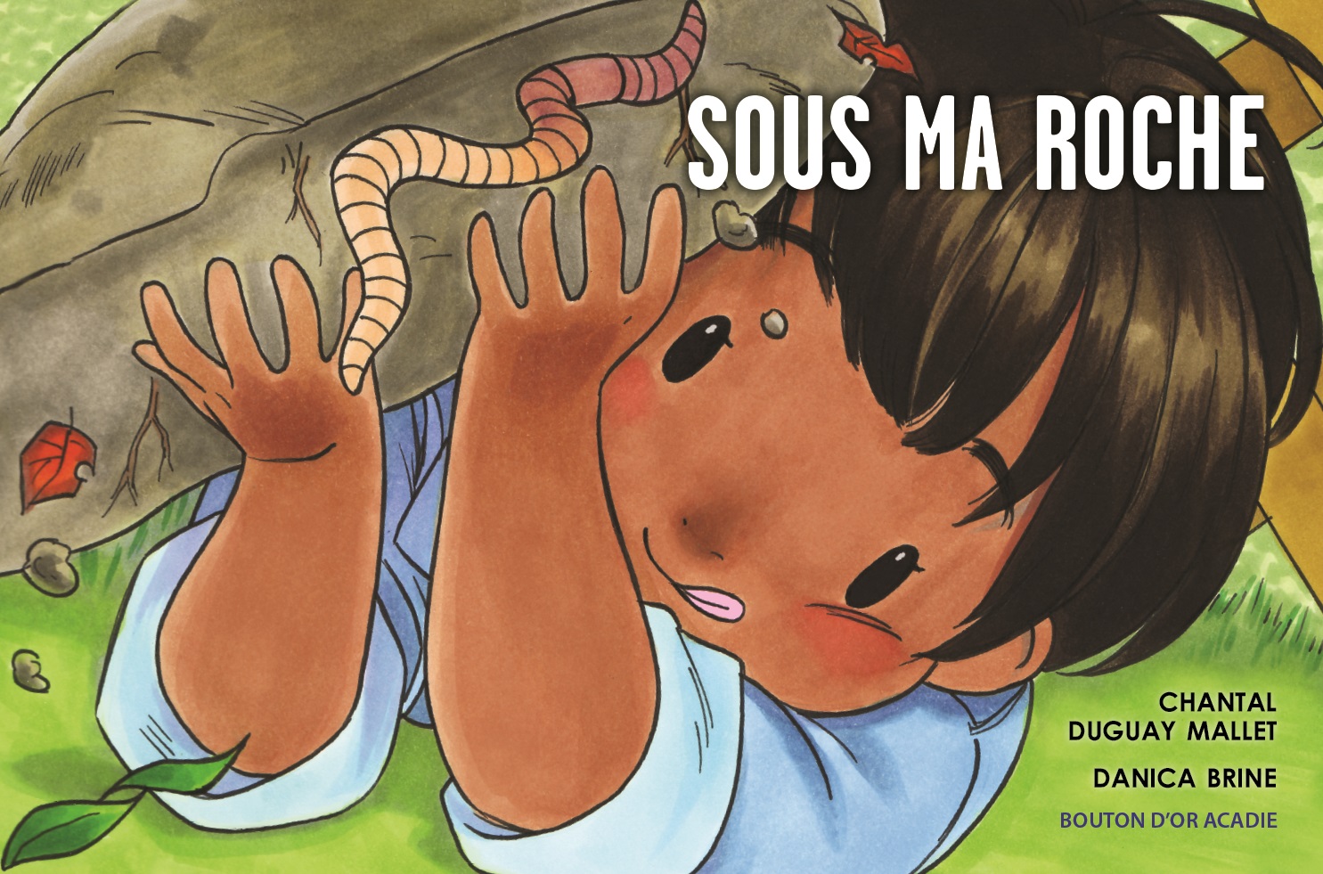 - Duguay Mallet, Chantal [texte] et Danica Brine [illustrations]. Sous ma roche, Moncton, Bouton d’or Acadie, 2015, 32 p.