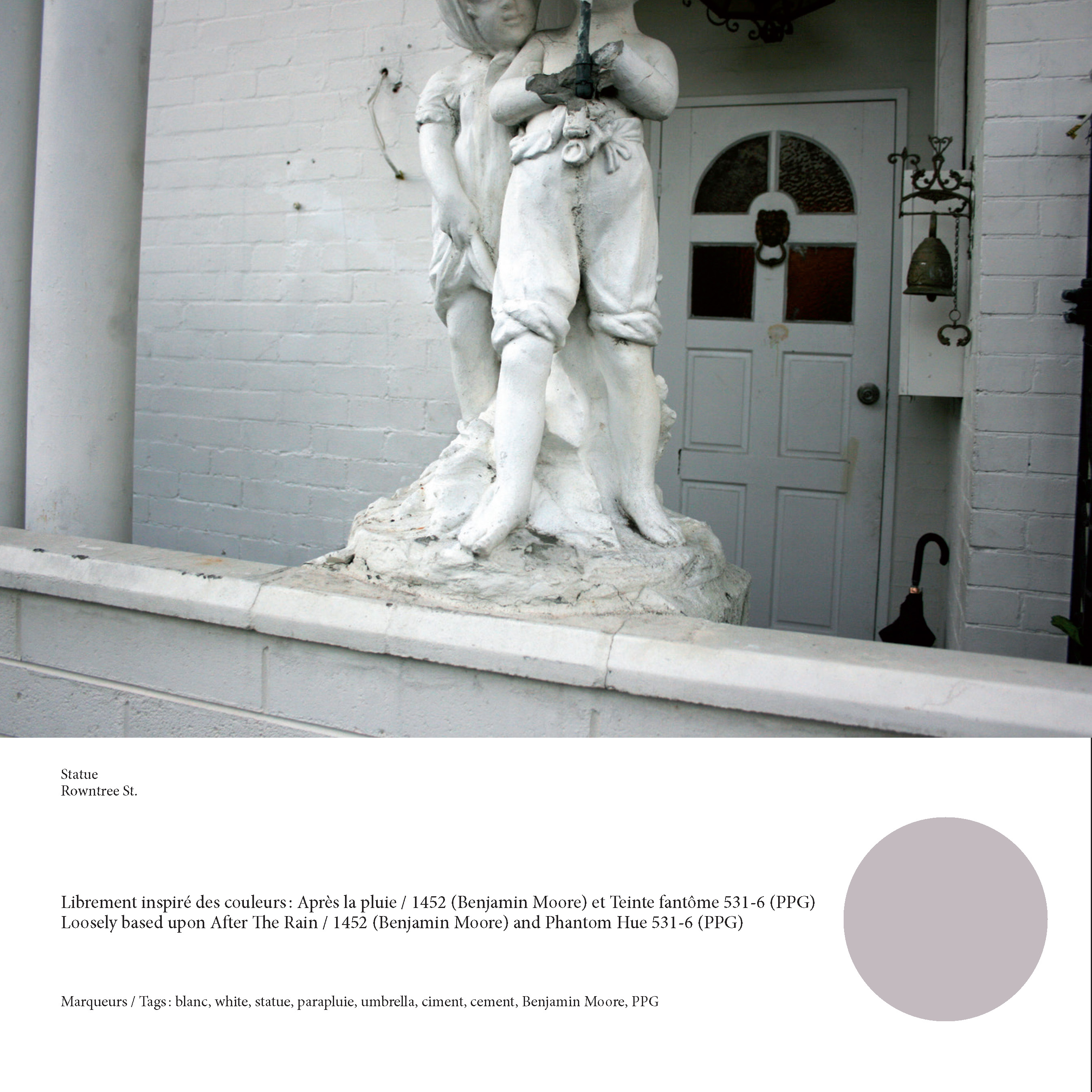 Ce qui retient mon attention quant à la création de ce « projet d’écriture sur la couleur » (p. 8) est précisément les différents rapports texte/image à l’œuvre dans un livre qui repense la lecture de la photo, de la couleur et de l’écoumène[2] d’une ville, soit la relation de l’humain à son milieu, à la lumière de la palette qui habite une communauté urbaine, plus précisément, à partir des différentes appellations que les fabricants de peinture donneraient aux couleurs de cette palette. Ainsi pensée, la matière colorante devient une sémantique vécue, c’est-à-dire une façon d’habiter les différents sens des mots qui servent à nommer ces couleurs. Elle « exprim[e] ce que nous sommes, maintenant, le Zeitgeist : l’esprit du temps » (p. 8), notre façon d’être dans le monde par la couleur, « chaque vie [étant] une couche, chaque décennie une couleur » (p. 15). En ce sens, chez Daniel H. Dugas, l’écoumène se transforme en atelier-monde.