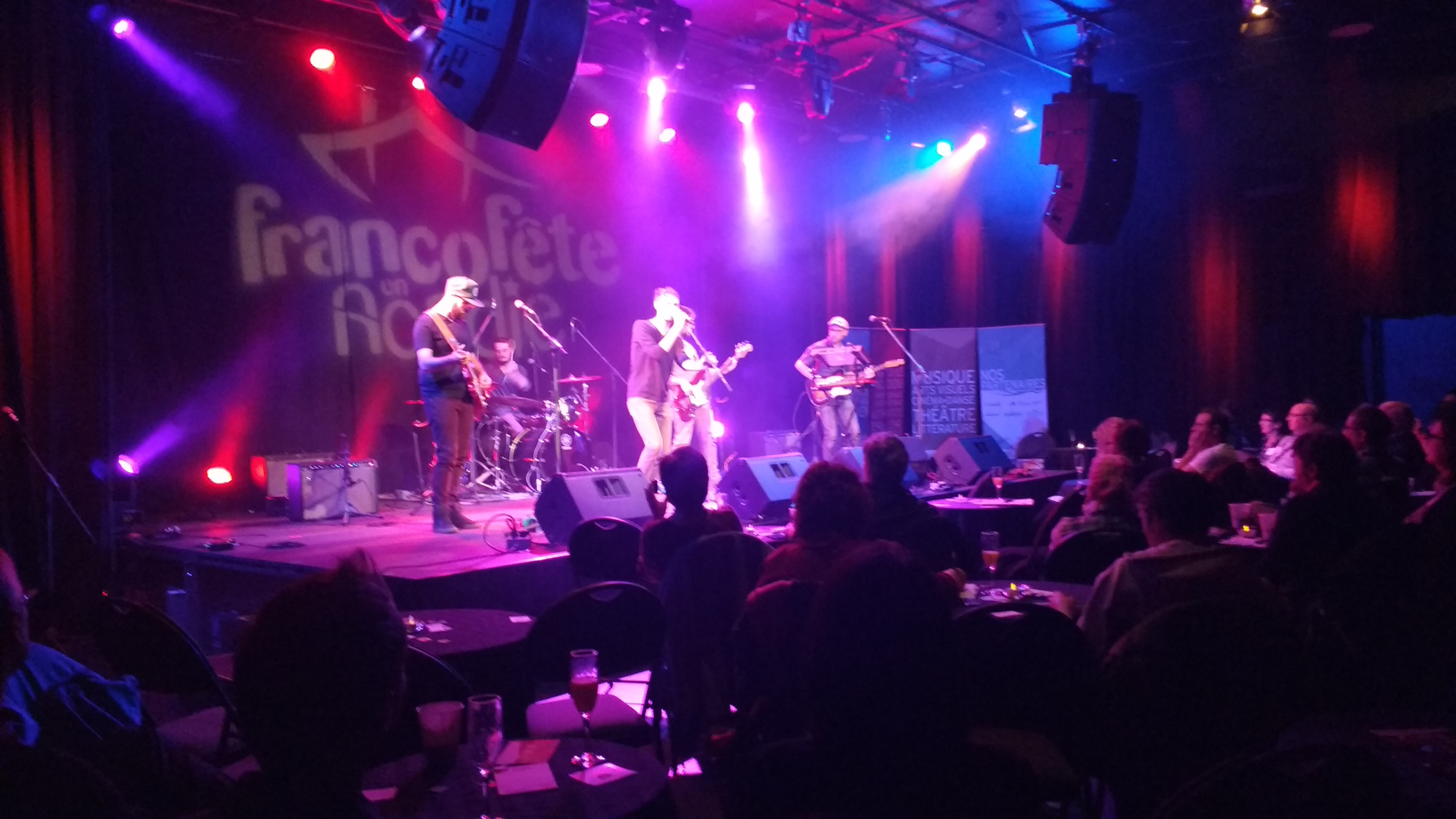 Bien que la Francofête soit un événement ayant comme public principal les membres de l’industrie du spectacle, visant à connecter des acheteurs culturels avec les artistes qui ont des spectacles à vendre, il en reste qu’elle a beaucoup à offrir aux citoyens. En plus du nombre accru de lancement stratégiques d’albums ayant lieu lors de cette semaine, il y a une programmation en continu offerte au Plan B, les Aft’heures, organisés par l’agence d’artistes Le Grenier Musique. Des vitrines d’artistes autant locaux que d’ailleurs au Canada font des soirées magiques qui vous assurent de faire des nouvelles découvertes. Le prix d’entrée est bas, et va directement aux artistes qui se déplacent parfois de loin pour avoir la chance d’être vus à la Francofête. J’peux sorta still pas croire que j’ai vu Simon Daniel, Cy, Anique Granger, Menoncle Jason, Raton Lover, The Gregories, et Le Winston Band au Plan B pendant la même semaine, parfois le même soir. Une chance que j’ai pris des photos floues pour en avoir des souvenirs, qui eux aussi sont franchement un peu flous.
