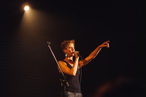 Relevons toutefois certains instants de pure beauté : la guitare simple et touchante de Fredric Gary Comeau; la personnalité originale et attachante de Jonathan Roy, poète publié aux Éditions Perce-Neige; et la rage dramatique de Sonia Cotten, une artiste qui perfectionne l’art du stand-up poétique. Sa récitation de Nique à Feu, un texte de sa composition, est percutante, trash et digne d’une grande comédienne. Citons aussi la présence chaleureuse et appréciée de Thomas Hellman, un chanteur et musicien déjà habitué à prêter son art pour célébrer les poètes, comme il l’avait fait avec le livre-disque Thomas Hellman chante Rolland Giguère paru en 2012 aux Éditions de l’Hexagone. Sa reprise de la chanson traditionnelle folk américaine 500 miles, tirée de son spectacle Rêves américains se joint merveilleusement bien aux thèmes qui sont ceux de Chiasson, soit le voyage, le vaste territoire et l’américanité; c’est l’un des moments les plus touchants de la soirée.