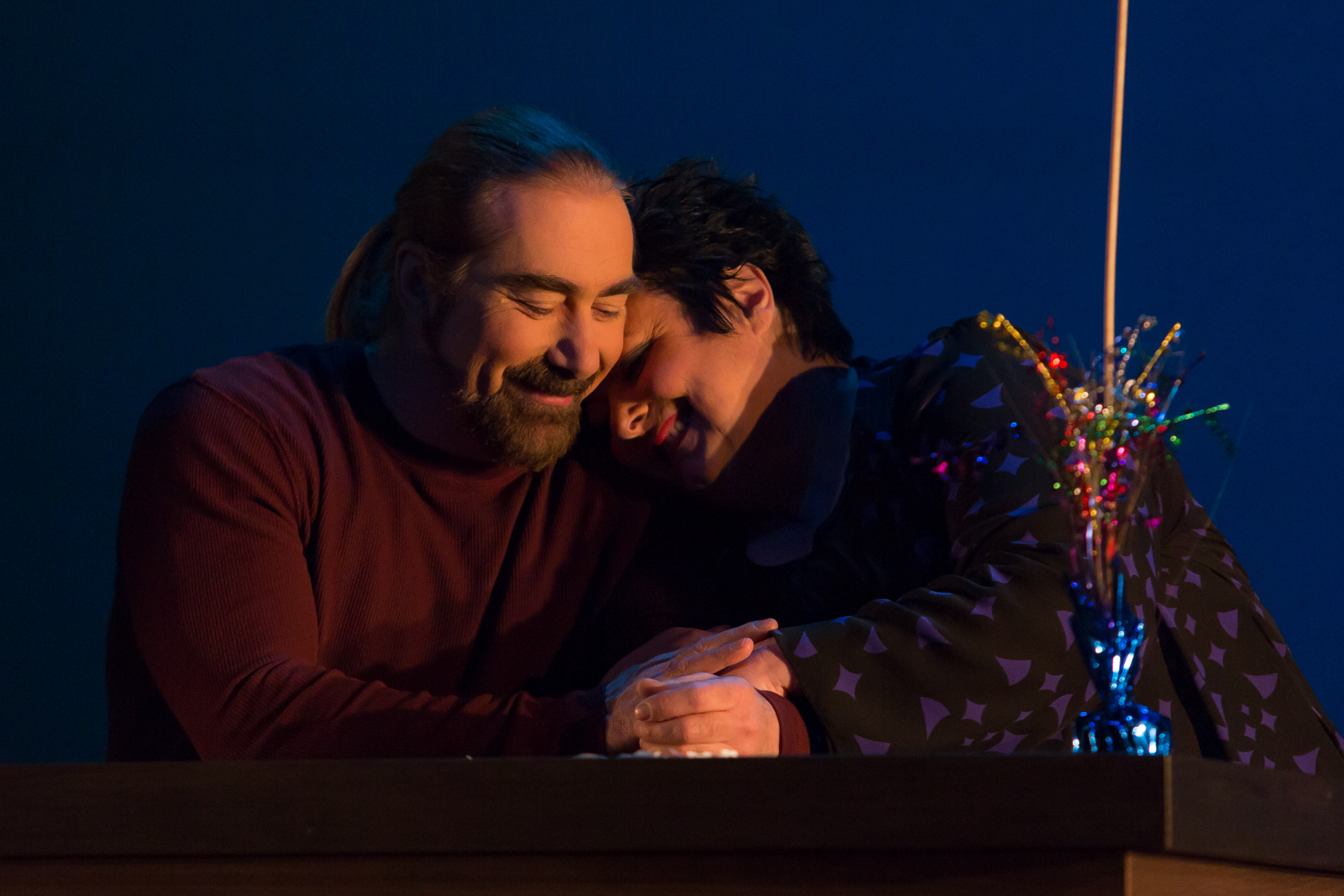 La pièce s’applique ensuite à exacerber les problèmes. Tout au long, les scènes sont entrecoupées d’extraits de «faux» (pas de blague ici, SVP…) bulletins d’une chaîne d’information en continu qui énumèrent à l’infini les maux, les torts et les travers de l’Alberta. On comprendra que l’enjeu écologique est rapidement propulsé à l’avant-plan. Il prend en effet beaucoup de place. Trop de place…? Non pas que l’on pourrait reprocher à une auteure bien de son siècle d’aborder sans ambages la question environnementale lorsqu’elle écrit une pièce sur l’une des plus grosses plaies ouvertes du Canada. Or, on reste surpris par les débordements du texte de Haché, qui par le passé avait su donner tant de puissance à la subtilité. Vous me répondrez que sur ce sujet, l’heure n’est plus à la retenue, que l’urgence amène à la parole directe, abondante et sans détour. Toutefois, vous répondrai-je, la pièce en souffre.