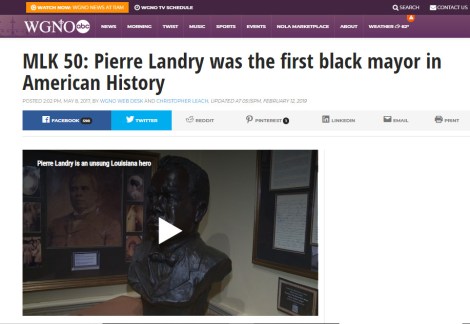 - «Honorable Pierre Caliste Landry, First Mayor of Color in U.S.»