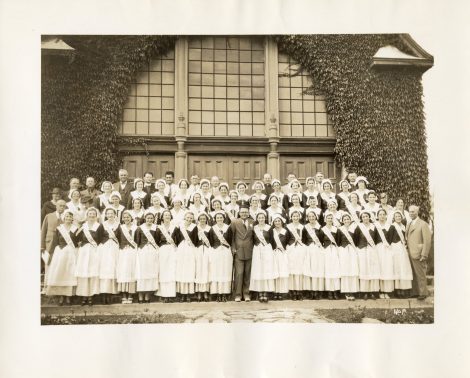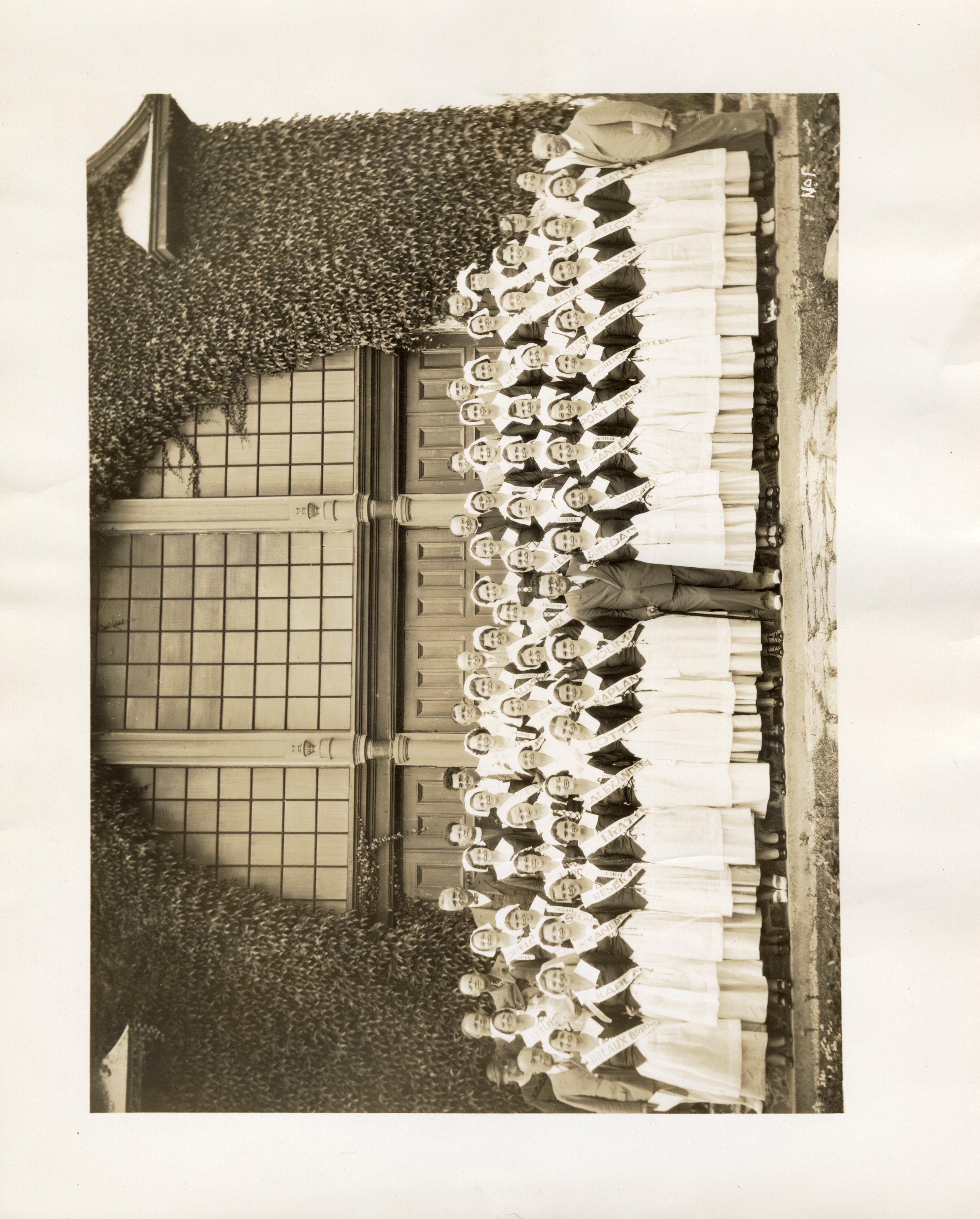 Des années 1930 aux années 1960, l’entrepreneur et homme politique louisianais Dudley LeBlanc organise des tournées de ses troupes «d’Évangélines» aux Maritimes. Voici un groupe à Grand-Pré en 1936. Collection privée de Jeanne Thibault.