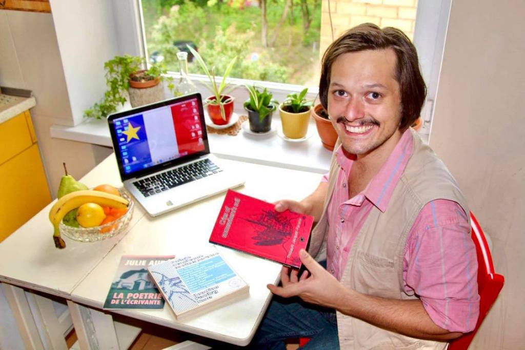 J’avais découvert ce jeune auteur avec ses publications dans la revue Ancrages. Elles m’avaient charmées par leur caractère atypique et non orthodoxe, et pour cette raison j’ai décidé de lire ses trois premiers livres : trois pièces de théâtre parues à Paris en 2016-2017 (d’ailleurs, je crois qu’à ce jour, La dérivée de Pâques reste le livre le plus agréablement étrange que j’ai jamais lu).