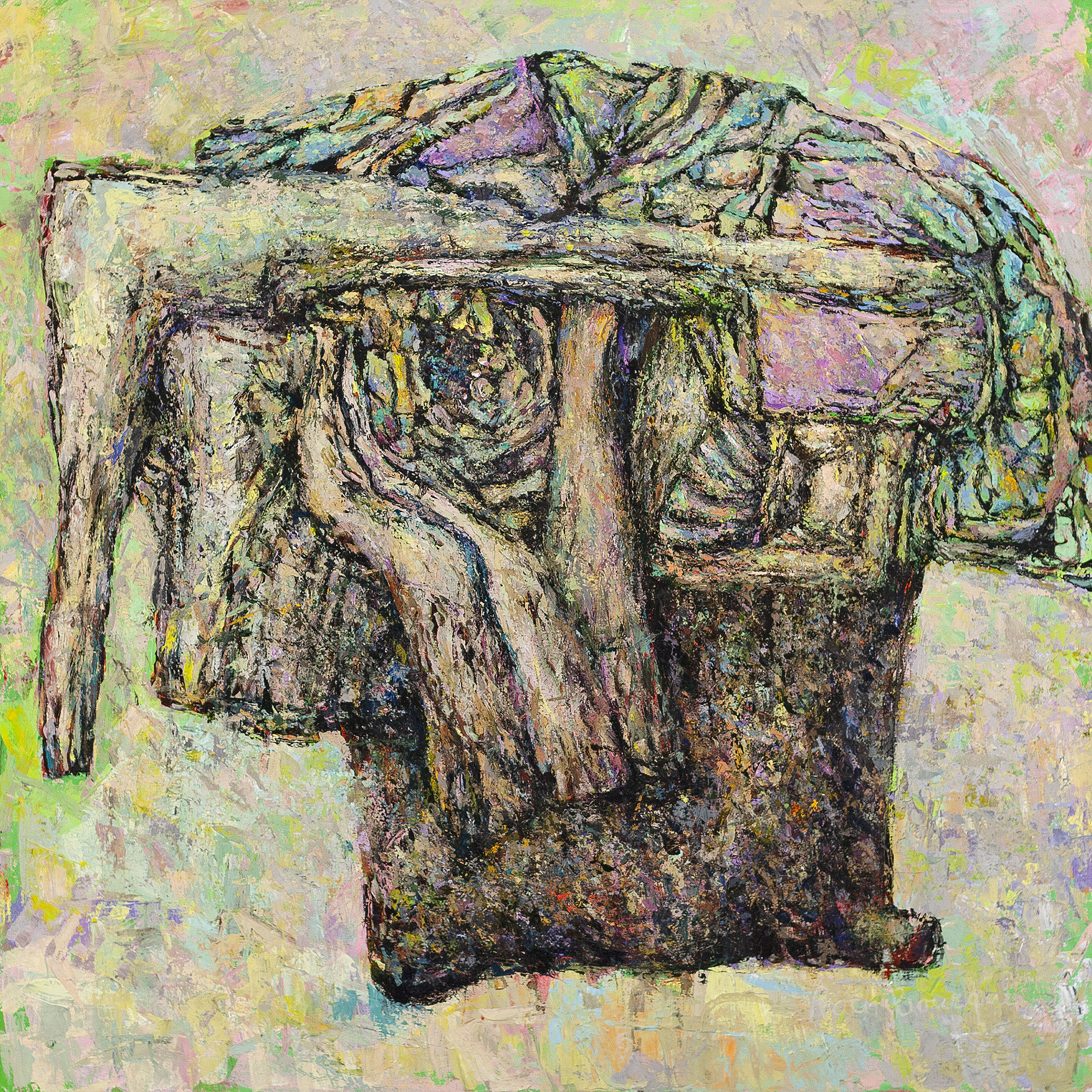 Les structures dépeintes sont denses et fort élaborées, selon une architecture toujours originale; elles sont parfois dans un équilibre fragile, même sur le point de s’écrouler ou de s’effacer dans le temps. Les formes qui les composent sont tantôt fortes et arrondies comme la pierre façonnée d’un sculpteur, tantôt aux allures aussi tenaces que des nœuds complexes de câble marin, ou encore simplement accotées les unes sur les autres. Certaines semblent taillées dans le roc ou le bois, d’autres tissées comme dans un tricot vu sous microscope, ou végétales et rebelles comme l’est une souche d’arbre. Enfin, dans la série de tableaux « diversion éclairée », les formes semblent fossilisées dans la matière mais toujours porteuses de vie.